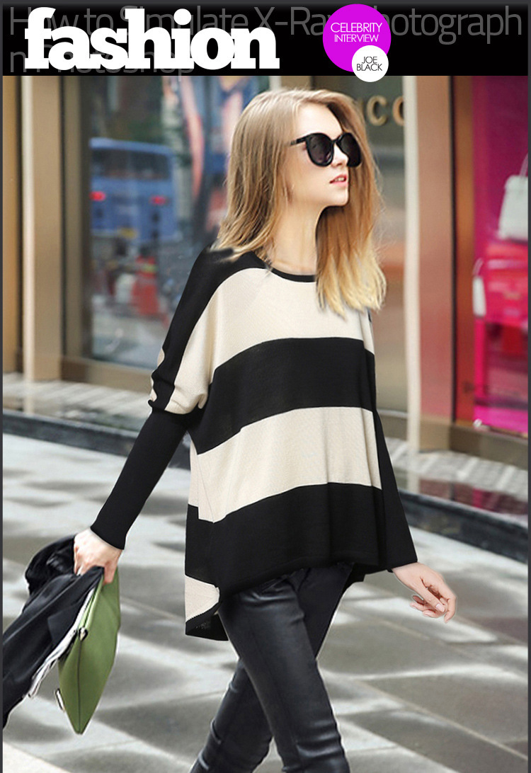 > Damen Bekleidung > Pullover > m 3xl plus Size im Herbst Batwing Ärmel Gestreiften Pullover gestrickt Pullover Damen Locker Springer Poncho