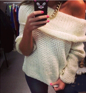 > Damen Bekleidung > Pullover > neue Mode Damen sexy Schulter ab Lockere Pullover Pullover Poncho Locker aus Top Pullover übergrosse Strickwaren