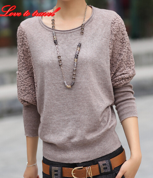 > Damen Bekleidung > Pullover > Herbst Pullover Damen elegant Batwing Spitzen hohl Ärmel Pullover und Pullover Crew Neck Locker lässig Pullover