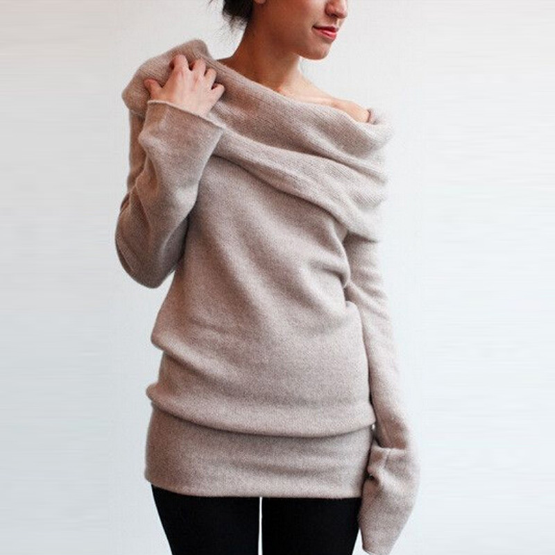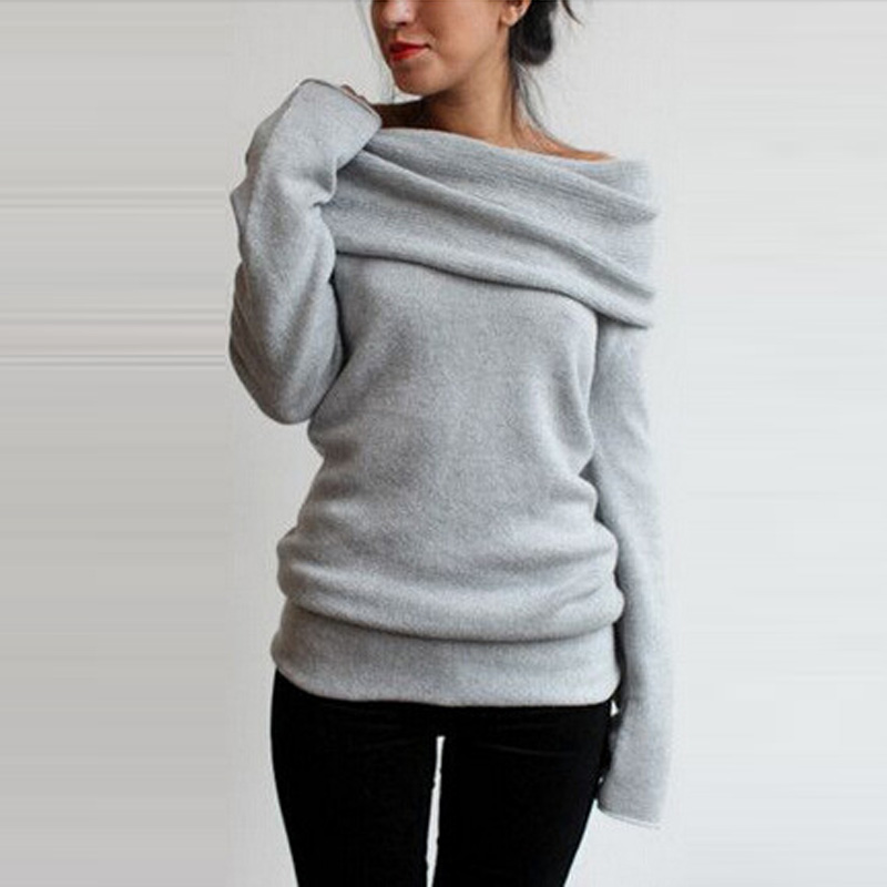 > Damen Bekleidung > Pullover > Mode Herbst SpRing Winter Lockere Damen Schulter ab Hals lange Ärmel Mantel Oberbekleidung Pullover Grauen