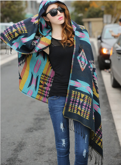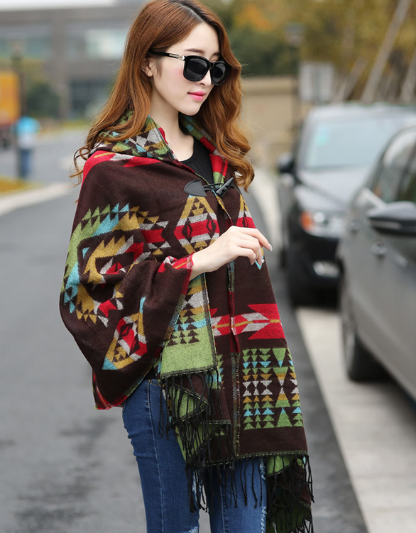 > Damen Bekleidung > Pullover > neue Fashion Fringe Ethnischen Geometrische Damen Batwing Cape Poncho Stricken oben Strickjacke Pullover