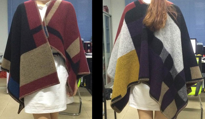 > Damen Bekleidung > Pullover > olivia palermo übergrossen Pullover Strickjacke laufsteg Strasse mit karierten Schal gestrickt Strickjacke Kap Poncho