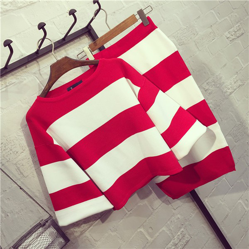 > Damen Bekleidung > Anzüge > 2 Stück im Winter die Dicke Damen Stricken elegante casual Locker Damen Gestreiften Rock Anzug aus Röcken Setzen