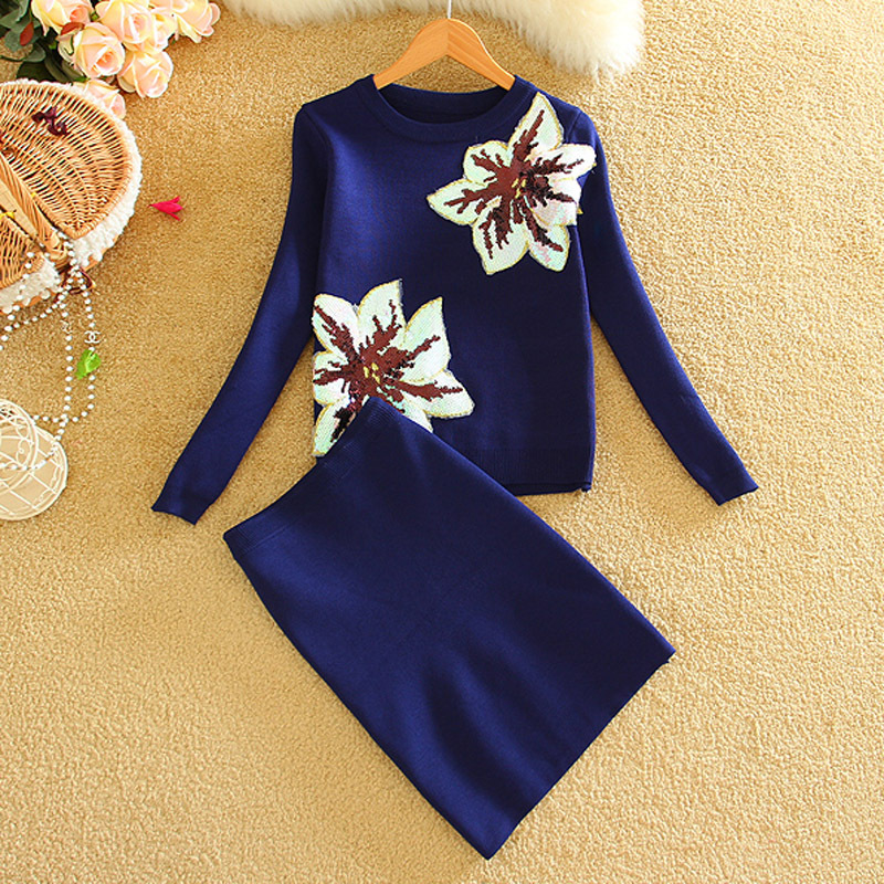 > Damen Bekleidung > Anzüge > Alpha Winter neue Tops und Rock Steht 2 Stück Damen schön sequines Blumen conjuntos Femininos saia