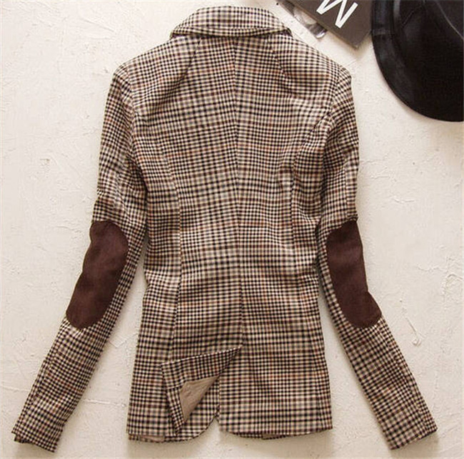 > Damen Bekleidung > Anzüge > neue Moderne Damen und kariert Ellbogen patches zwei Button slim fit Blazer Damen Herbst Steht die Jacke