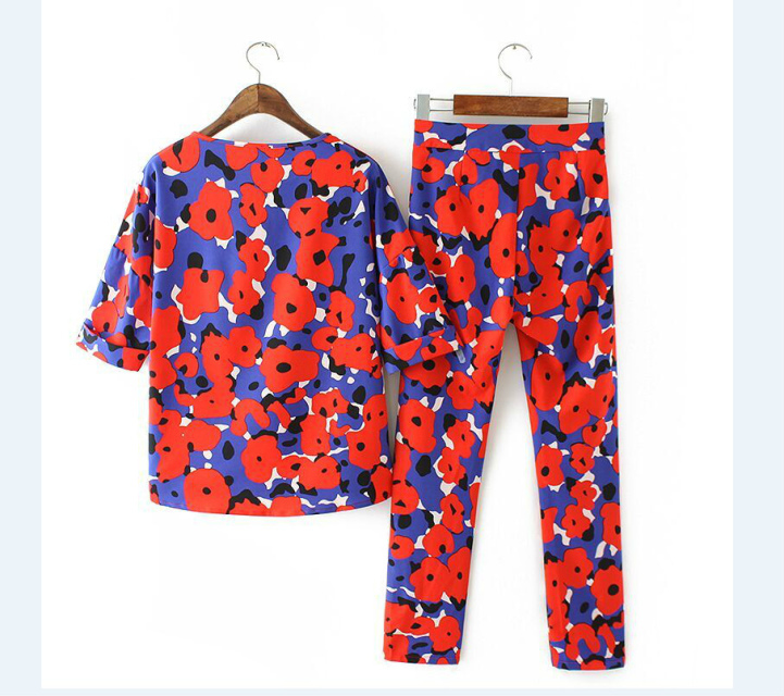 > Damen Bekleidung > Anzüge > ff40 Mode Sommer stöhnen Damen Anzug zwei Stück Steht Damen twin 2 Stück Rote Hose legt Chiffon elegante Floral