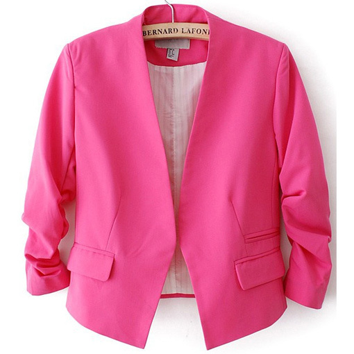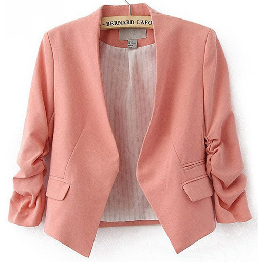 > Damen Bekleidung > Anzüge > Blazer Damen Süssigkeiten Farbe weibliche Blazer Damen Jacke 3 4 Ärmel Taschen keine Taste Frau slim short Sakko