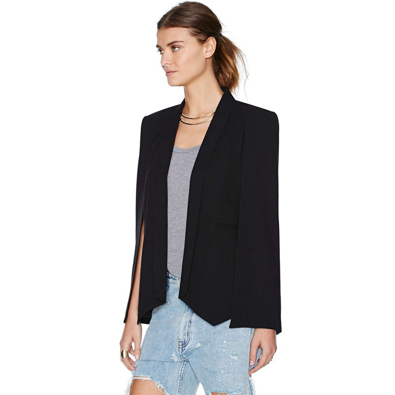 > Damen Bekleidung > Anzüge > xxl Grösse xs 6 Damen Mode White Schwarzen ReVers split lange Ärmel Taschen Lockere Blazer Cape