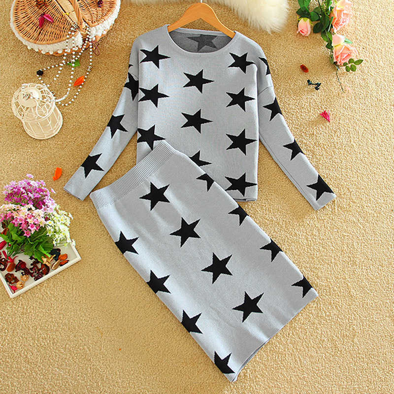 > Damen Bekleidung > Anzüge > Alpha Damen im Winter aus Set Rock und Stricken Blusen Damen Herbst Sterne Mode Damen neue 2 Stück Rock und Setzen