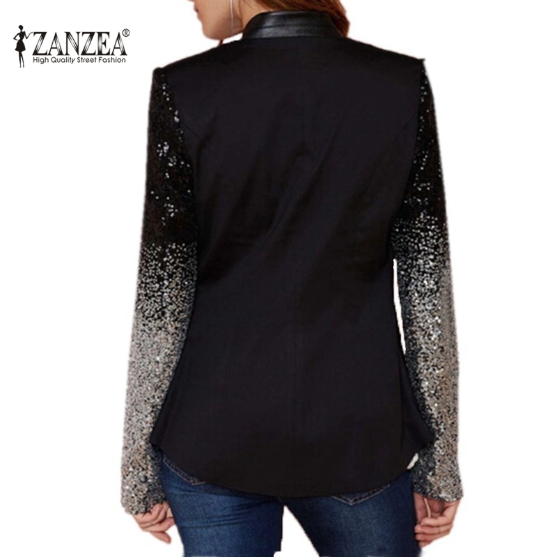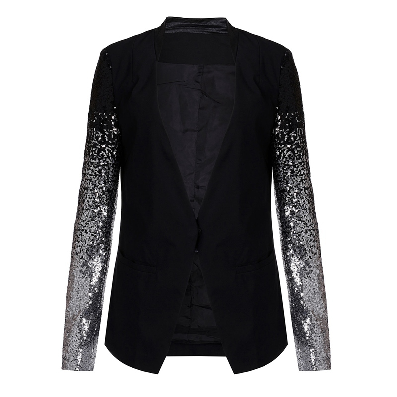> Damen Bekleidung > Anzüge > Damen Mantel Mode Formalen Blazers Anzug Frühjahr lange Ärmel Revers Farbverlauf splitter Schwarz bling paillett