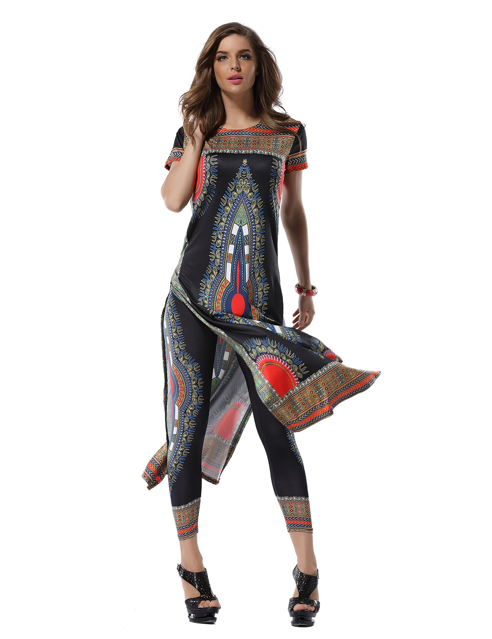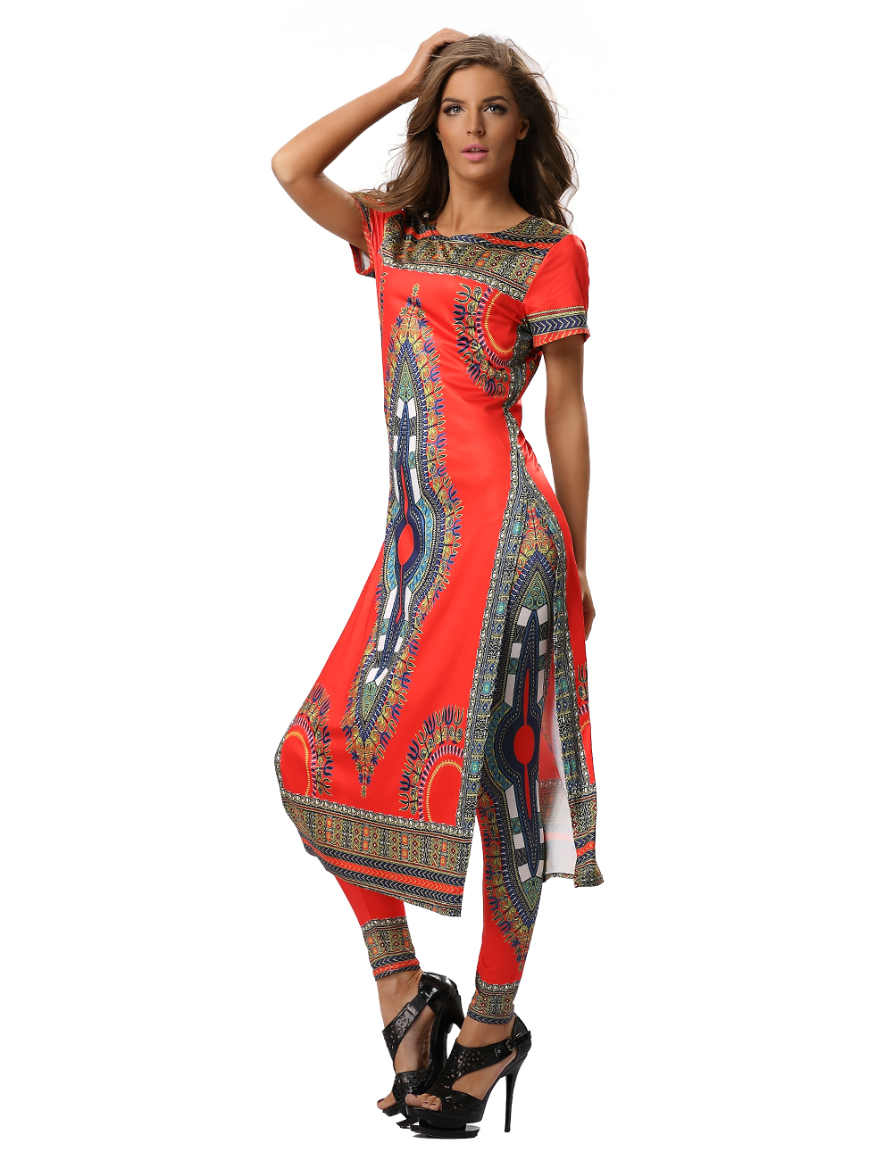 > Damen Bekleidung > Anzüge > Sommer Traditionelle afrikanische Mode mit Seite teilen lange Kleid und Damen Traditionelle afrikanische Mode leggin