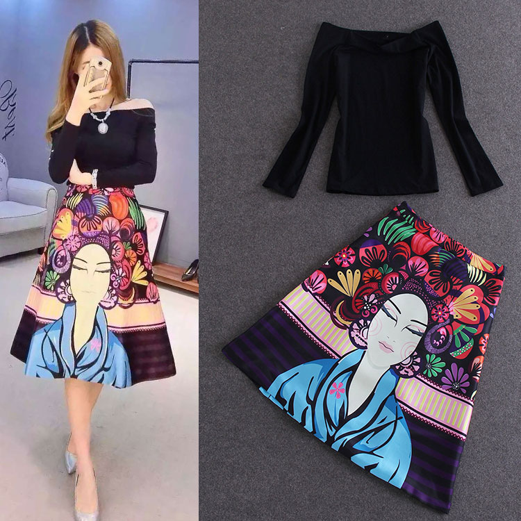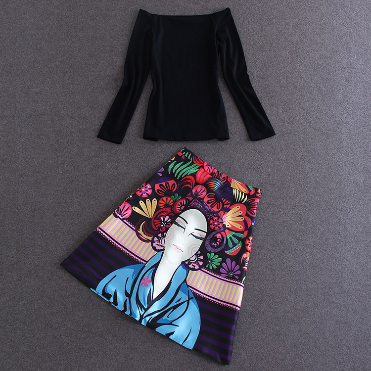 > Damen Bekleidung > Anzüge > 2 Stück Damen Frühling Herbst Designermarke Damen Mode Pflanzliche Top Rock und gedruckt Damen Röcke