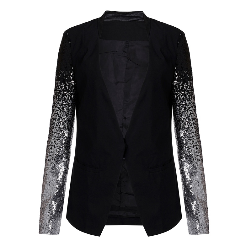 > Damen Bekleidung > Anzüge > Damen Dünne Jacke Mantel im Herbst lange Ärmel Revers Schwarze pailletten elegante Mode silber Blazer Anzug femin