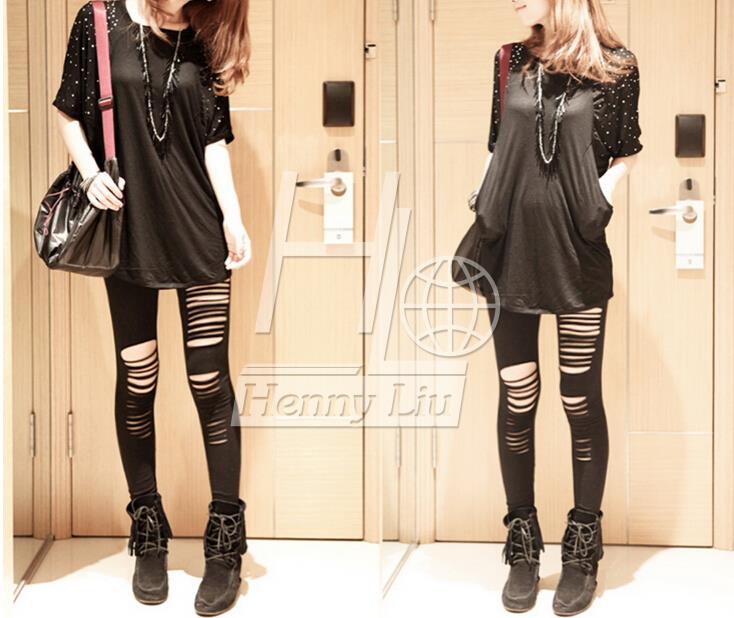 > Damen Bekleidung > Hosen > stretch Schwarze tanzen ein Riss Leggings elasticized Taille Damen sexy Leggings zerrissenen Hose Winter Leggings