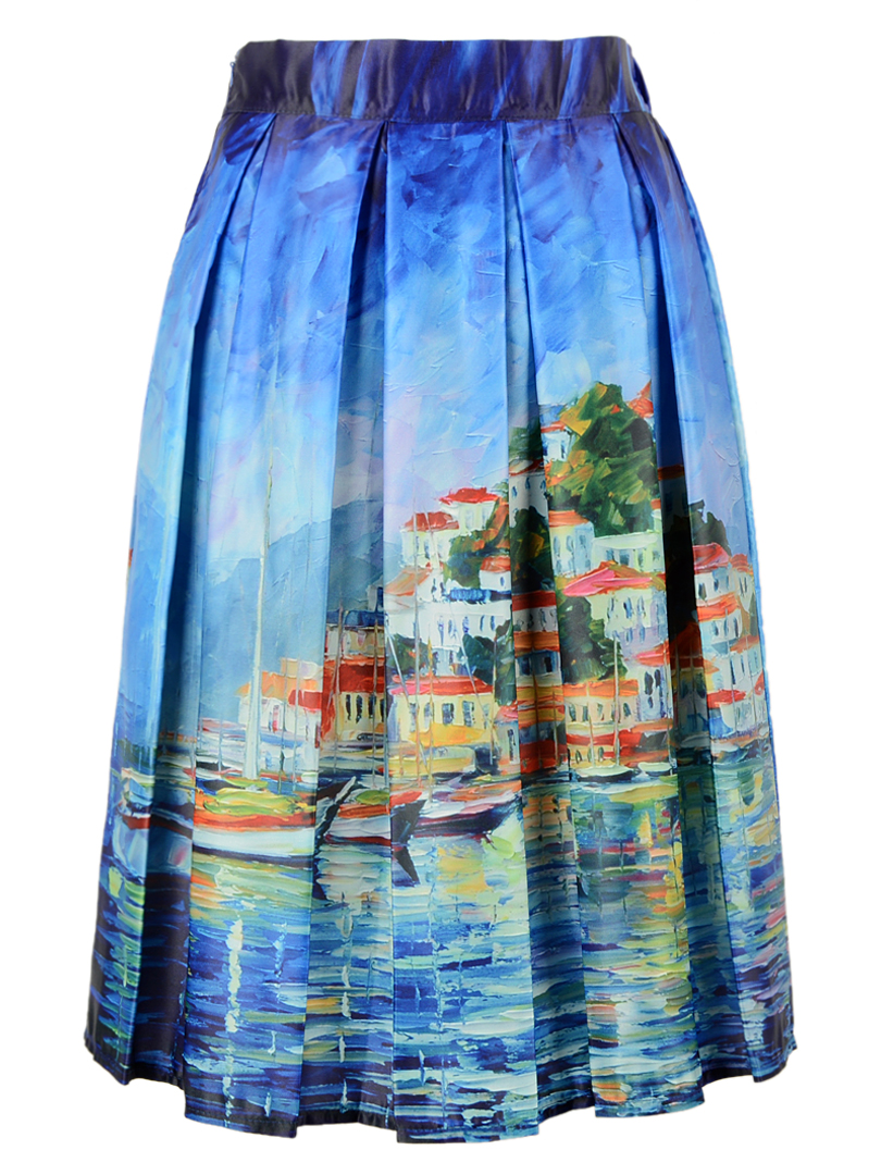> Damen Bekleidung > Hosen > daylook charm Lady casual szene Print hohe Taille gefaltete Skater Rock hohe Taille gemälde Skater Rock frei