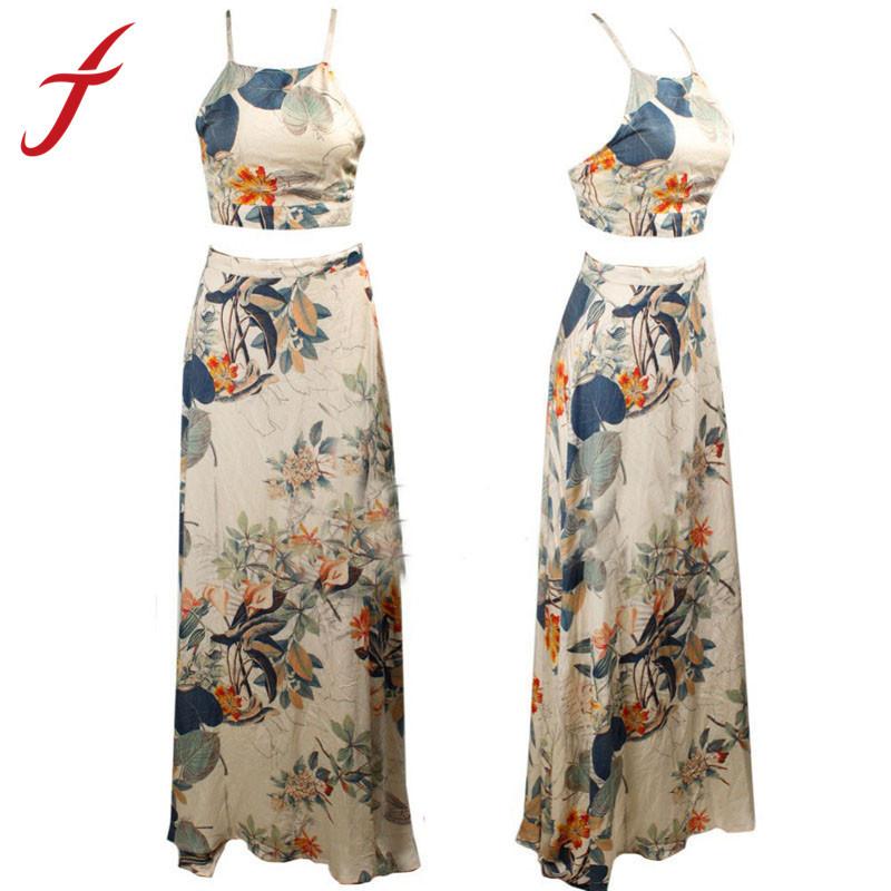 > Damen Bekleidung > Kleider > feitong Mode Sommer lange Maxi Kleid mit sexy Damen kreuz rückenfrei boho Halterneck Blumenmustern 2 Stück hat part