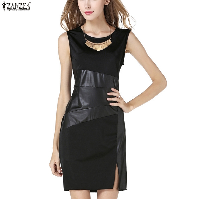 > Damen Bekleidung > Kleider > sexy Damen Sommer Party Kleid Schwarze pu Leder Patchwork Ärmellose Bodycon elegante slim BleiStift arbeit