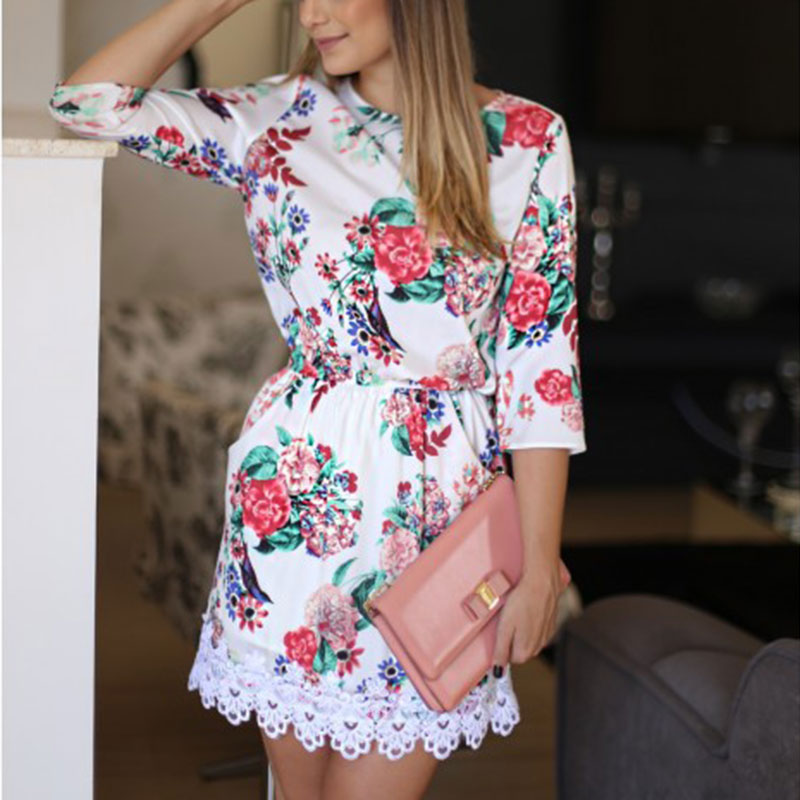 > Damen Bekleidung > Kleider > Damen Sommerkleid Florale weise casual o Hals lange Ärmel Spitzen comfortablebeautiful heiß s m l xl Mini