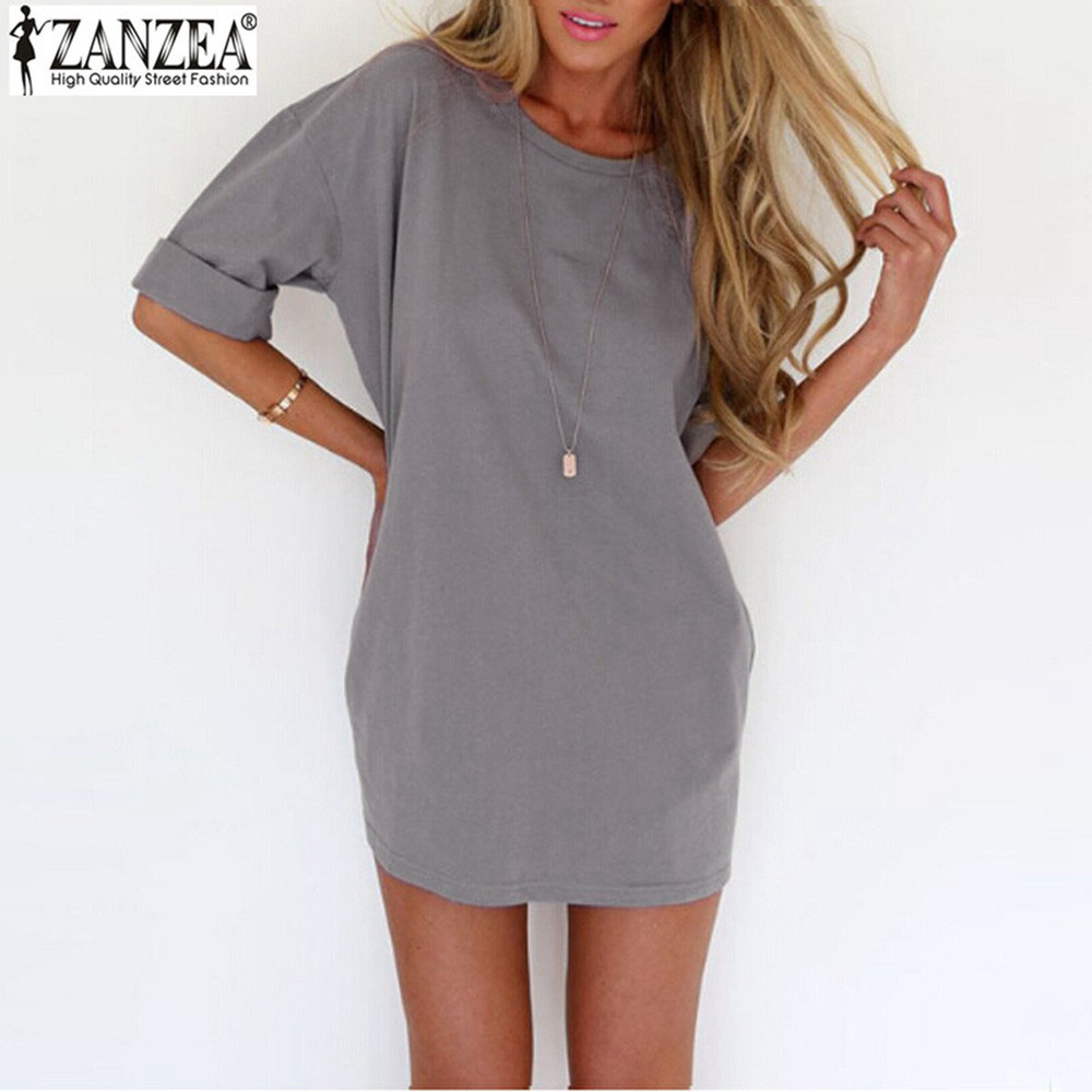> Damen Bekleidung > Kleider > Summer Style Mode Damen lässig Locker ein sexy Kleid Damen kurze Ärmel Einfarbig Mini Kleider Vestidos