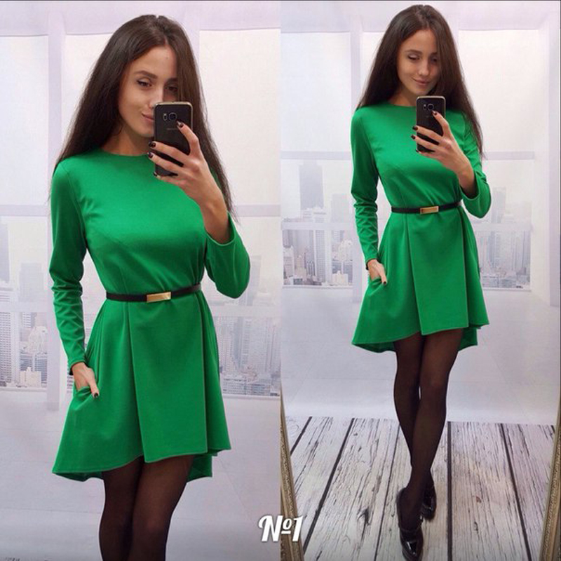 > Damen Bekleidung > Kleider > Damen lässig um den Hals Einfarbig Kleiden und Langärmelige Kleid Kleidung und Grösse