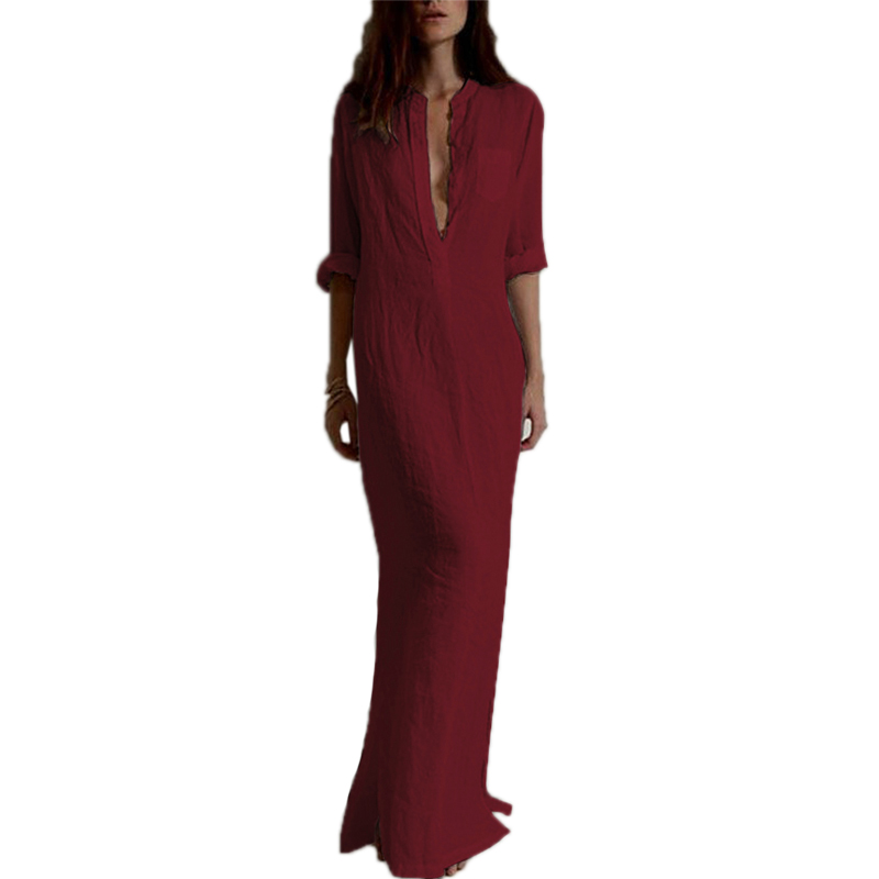 > Damen Bekleidung > Kleider > gute Qualität Sommer Damen Mode Kleider leinen Baumwoll lässige split Maxi Verpacken Hemd Kleid Damen Vestidos