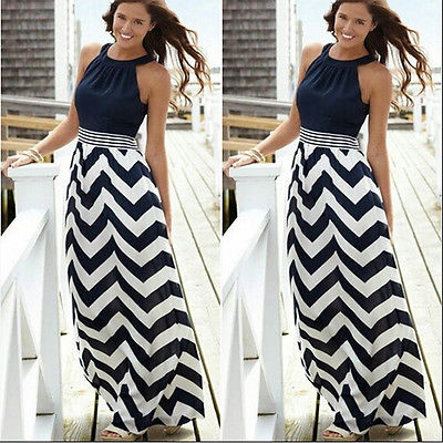 > Damen Bekleidung > Kleider > Frau Sommer Gestreifte boho Abend Party lange Maxi Strand Dress Chiffon Kleider