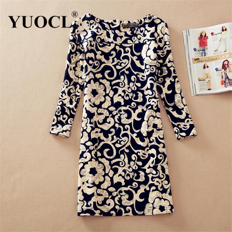 > Damen Bekleidung > Kleider > Damen Winter Dünnen Kleider 3 4 Ärmel Vintage Blumenmustern Damen Kleid Herbst weibliche casual büro