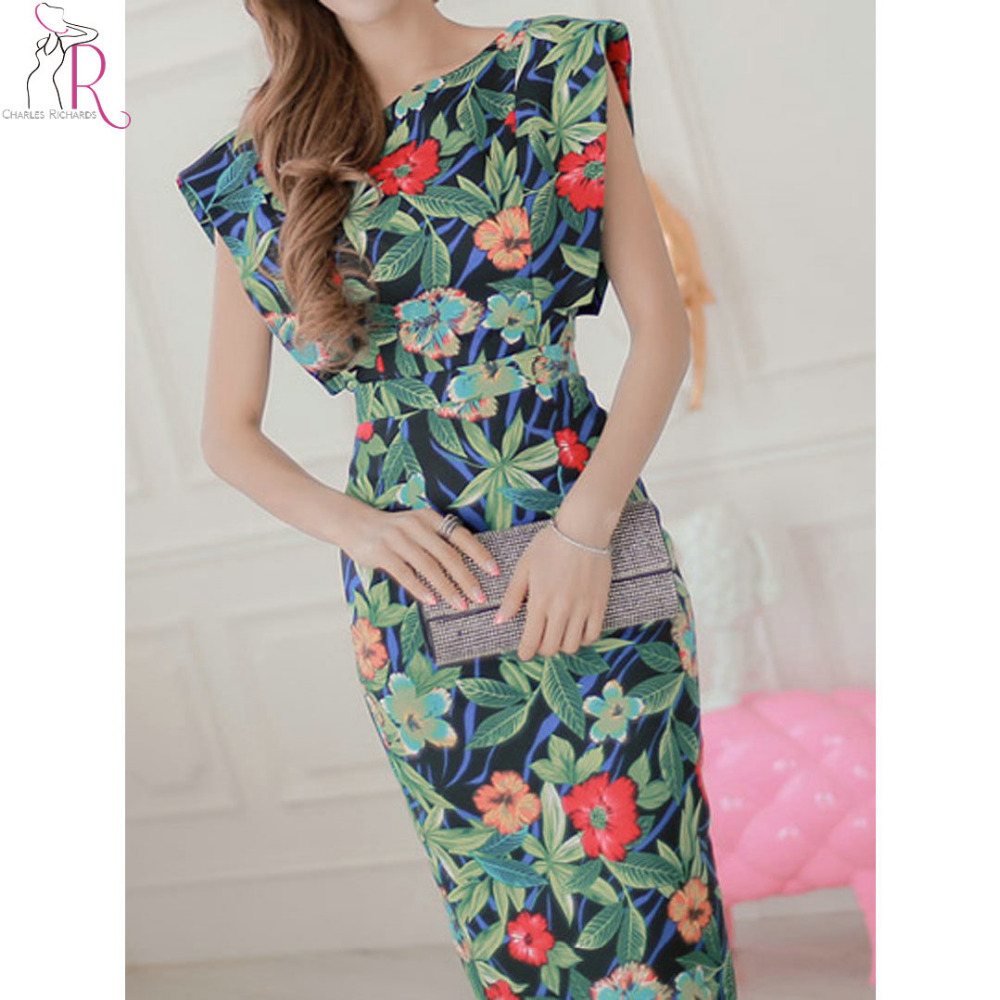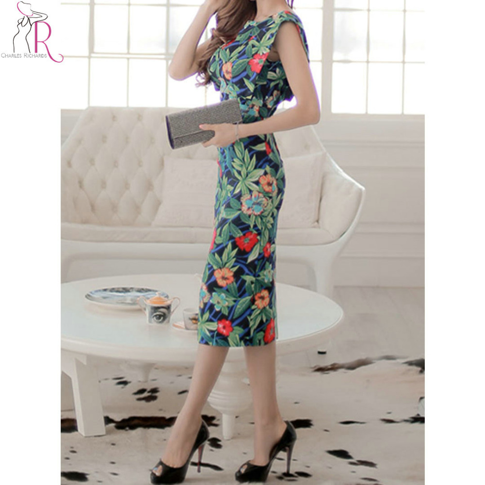 > Damen Bekleidung > Kleider > Damen Ärmellose schnitt rückenfrei Vintage Florale Grafik Fingerabdrücke Midi Stift Partei lässig Bodycon Kleid