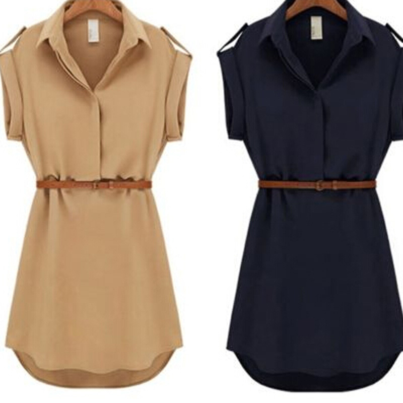 > Damen Bekleidung > Kleider > Damen im Sommer eine solide und kurzen Kleid mit gürtel Grösse Chiffon casual Kleider für Party Strand büro Summer