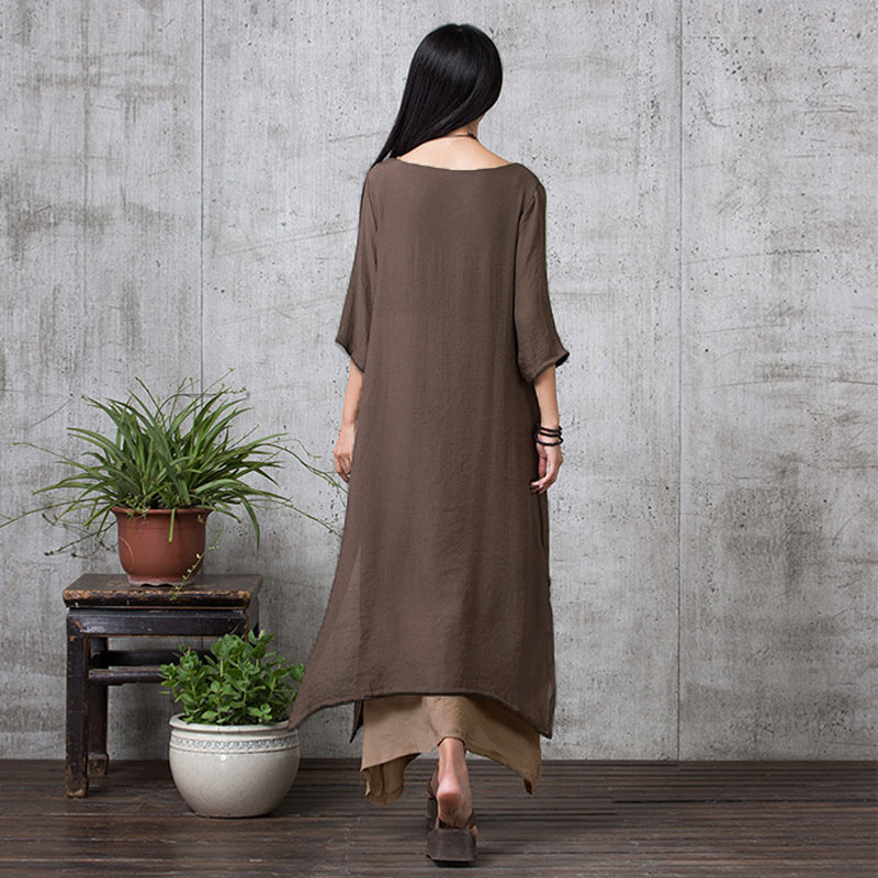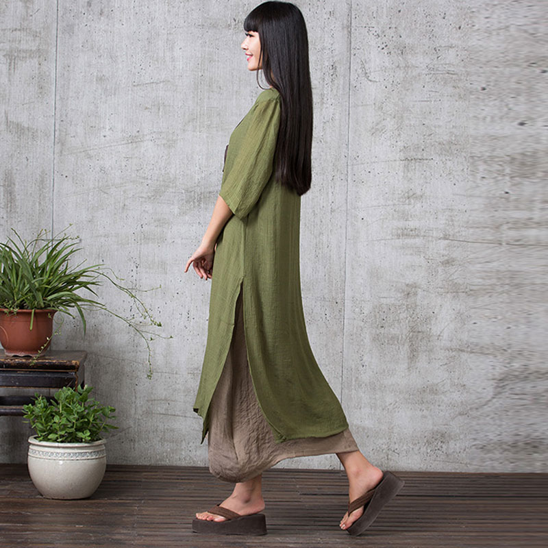 > Damen Bekleidung > Kleider > Mode Cotton Linen Vintage Kleid im Herbst so lange Maxi Kleider Damen Locker boho Vestidos plus Size