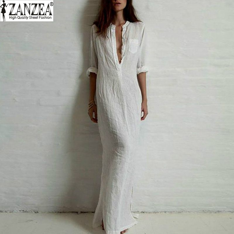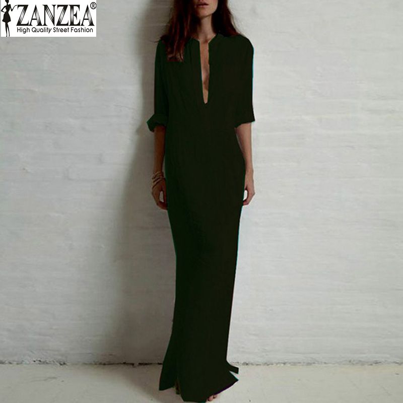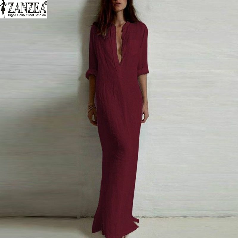 > Damen Bekleidung > Kleider > Mode Vestidos Herbst Damen sexy Kleidung casual lange Ärmel Tiefe v Hals bettwäsche split solide lange Maxi