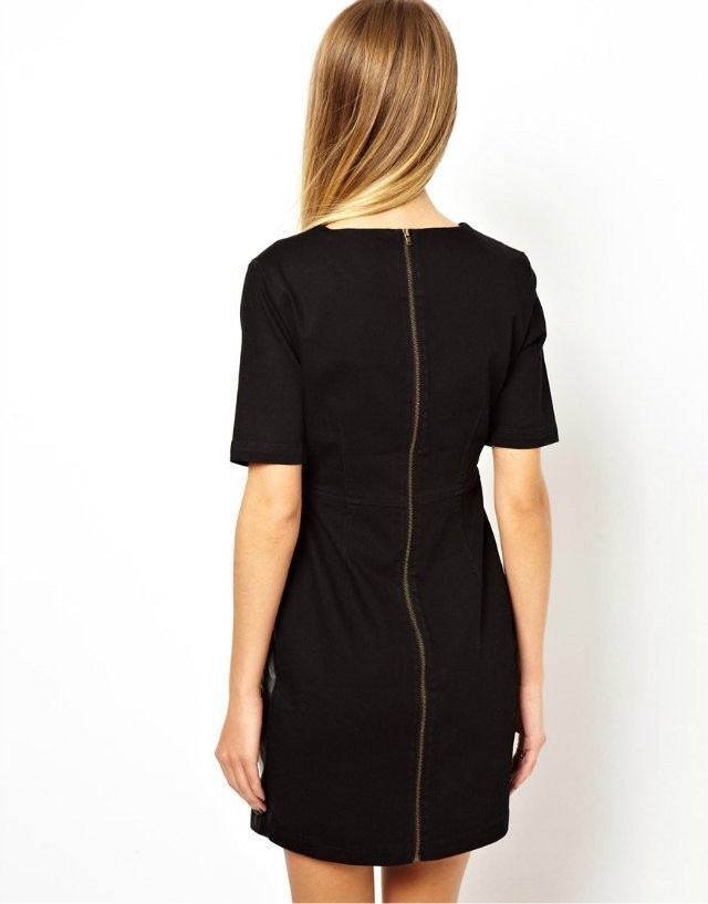 > Damen Bekleidung > Kleider > tidesource heißes Verkauf kurze Ärmel Frühjahr Sommer Kleid aus Leder Patchwork Schwarze Damen Kleider Zurück