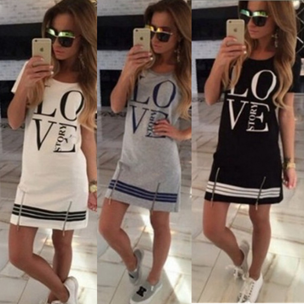 > Damen Bekleidung > Kleider > Sommer Stil casual Mode Damen schreiben Drucken o Hals kurze Ärmel reißverschluss lange vor Sommer Knie Kleid