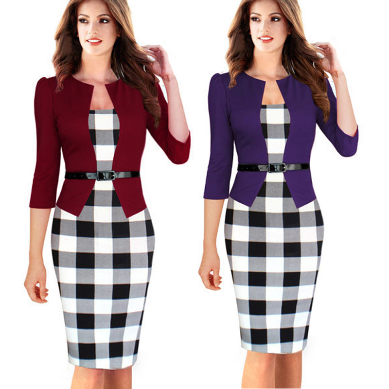 > Damen Bekleidung > Kleider > schön für immer ein Stück Faux Jacke kurz Eleganten Muster Arbeiten Kleid büro Bodycon weibliche 3 4 oder die Ärmel