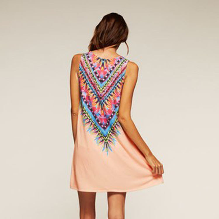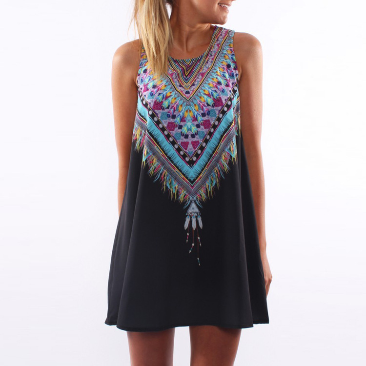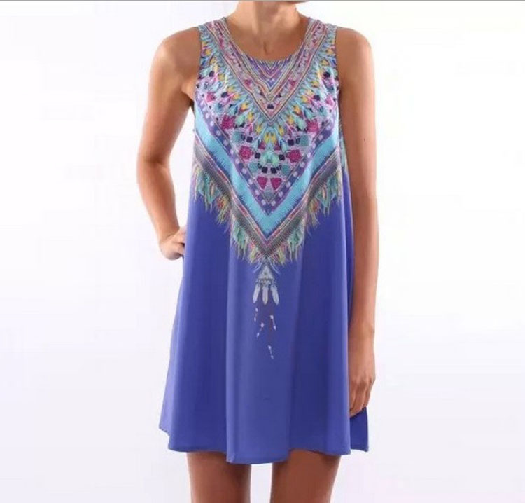> Damen Bekleidung > Kleider > Vestidos Damen Sommer casual Böhmischen Vestido de renda Tank Mini Kleid Strand Blumenmustern Ärmellose Chiffon