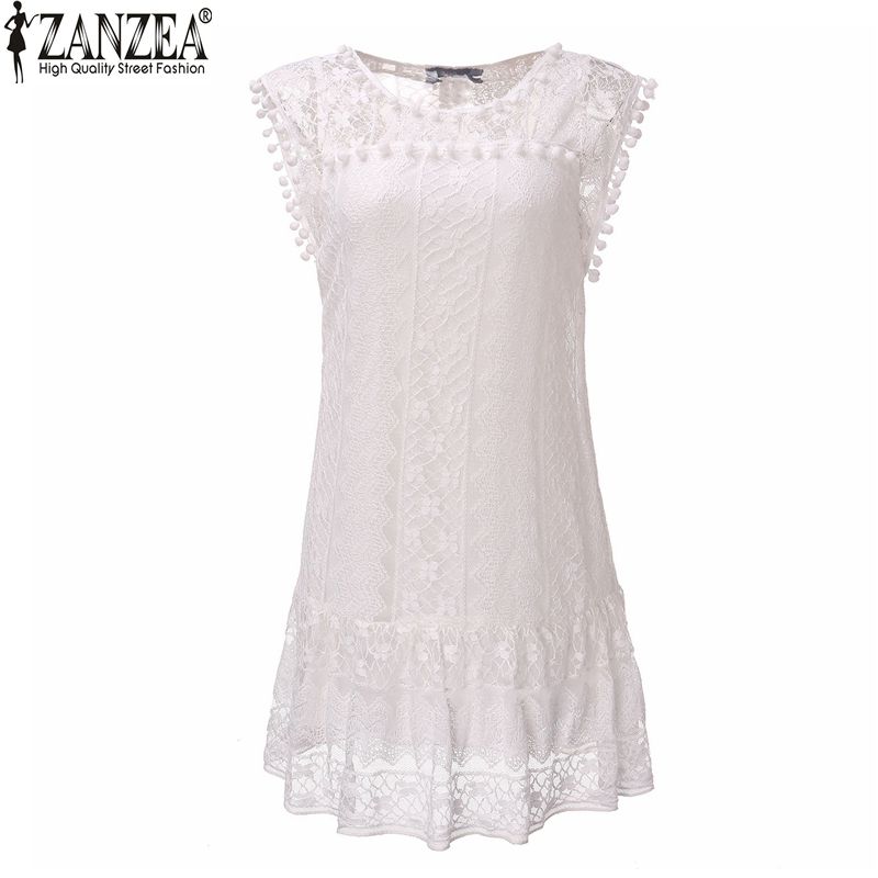 > Damen Bekleidung > Kleider > sexy Damen Ärmellose Kleid lässig am kurzen Kleid Tassel Weisse Mini Spitzen Kleid Vestidos plus 10