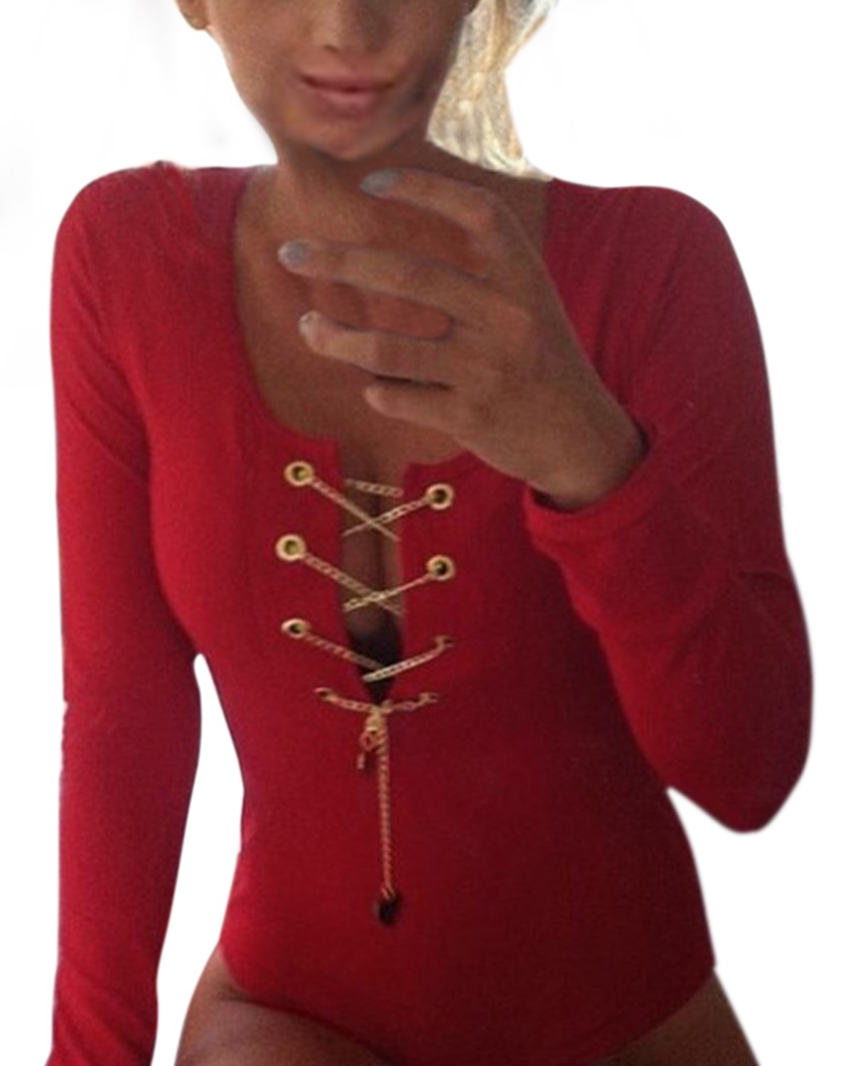 > Damen Bekleidung > Strampler > neue Rompers Womens Overall sexy trikot Tops Bodysuit Damen Spitzen bis slim Playsuit lange Ärmel Overalls