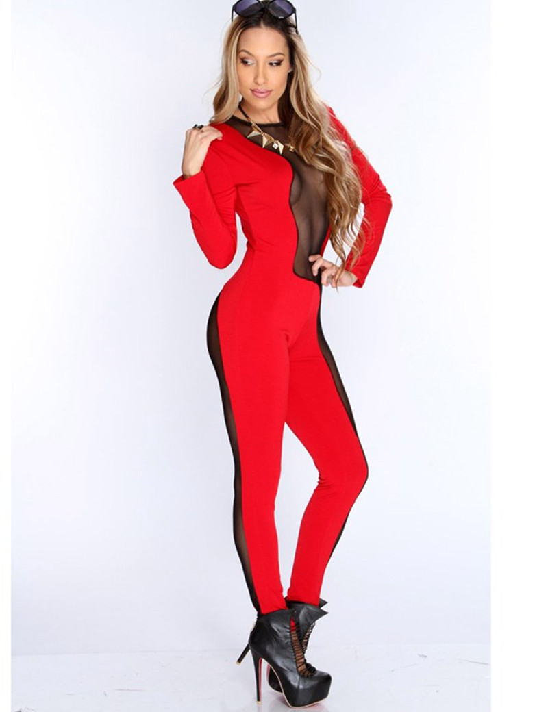 > Damen Bekleidung > Strampler > r70129 neuer Sommer Stil Damen Overall o Hals lange Ärmel sexy Damen tragen Rot Blau und der Leopard Overall