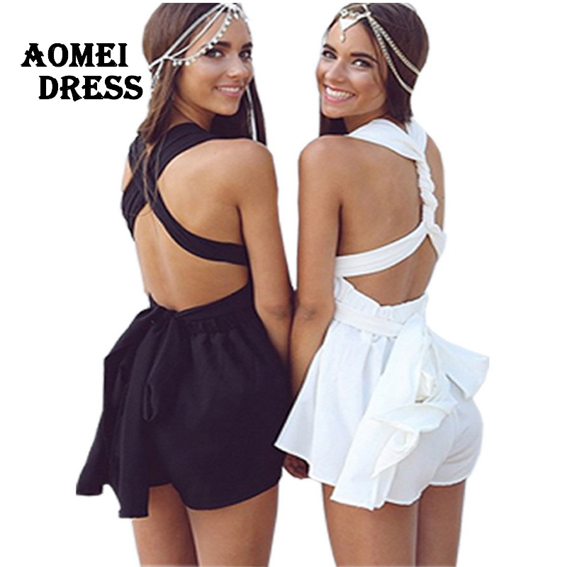 > Damen Bekleidung > Strampler > Sommer Strand Rompers Damen sexy Mode Overall Chiffon Verkauf Schwarz rückenfrei Body sexy spielen Steht Macacao