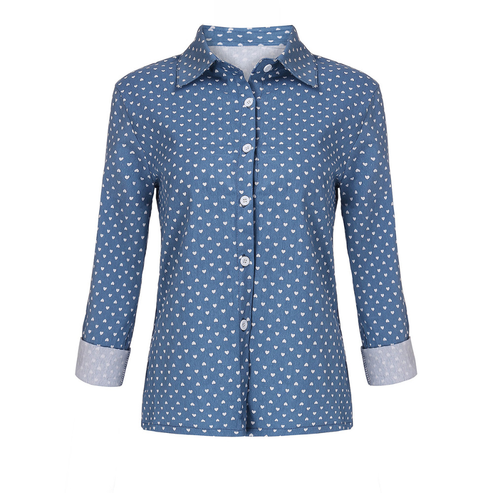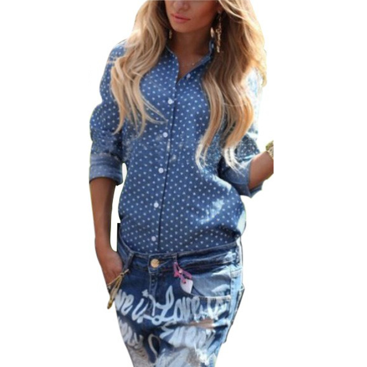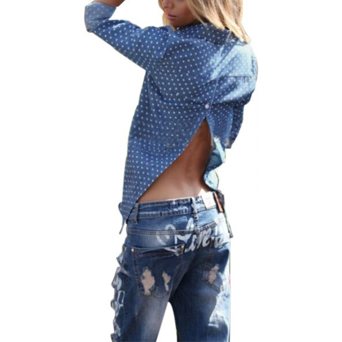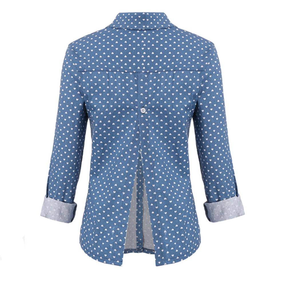 > Damen Bekleidung > Shirts > neueste Herbst Hemd Mode Damen Europa Stil casual Bluse Top lange Ärmel Blaue Revers knöpfe wieder split Hemd