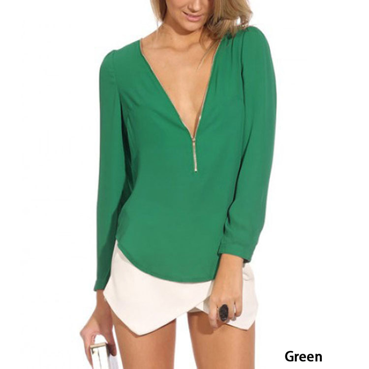 > Damen Bekleidung > Shirts > Mode Herbst Hals lange Ärmel reißverschluss sexy Chiffon Blusen tragen Damen Arbeiten Femininas höchstens 6