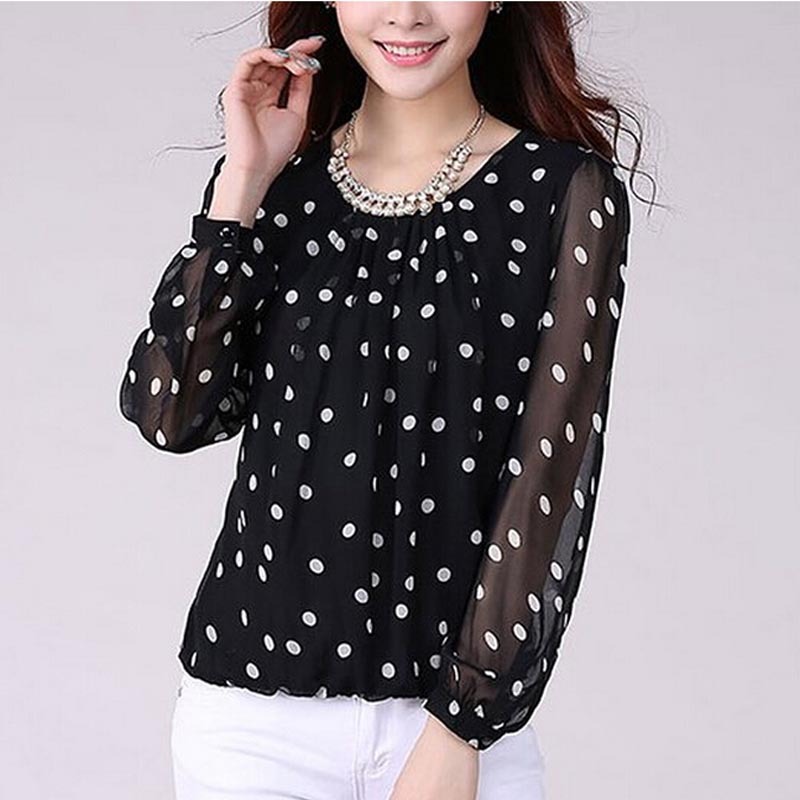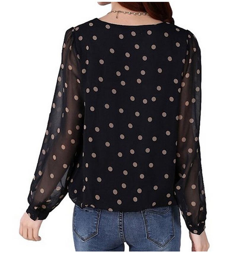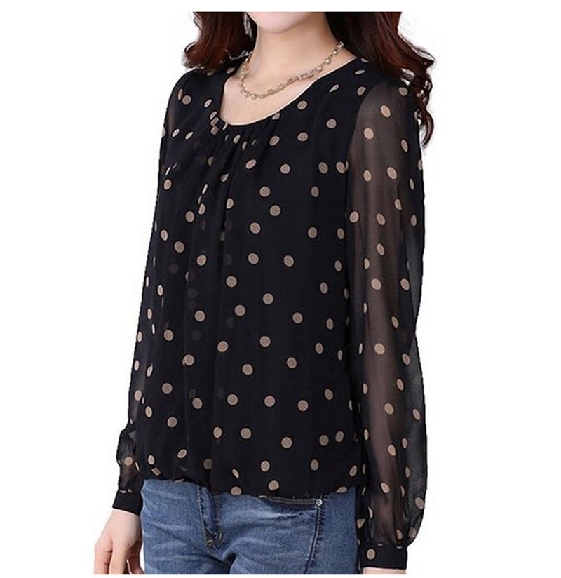 > Damen Bekleidung > Shirts > Damen Blusen Polka Dot Chiffon Bluse blUSA Feminina Damen höchstens o Hals lange Ärmel Mode Chemise Frau Hemden