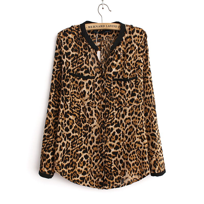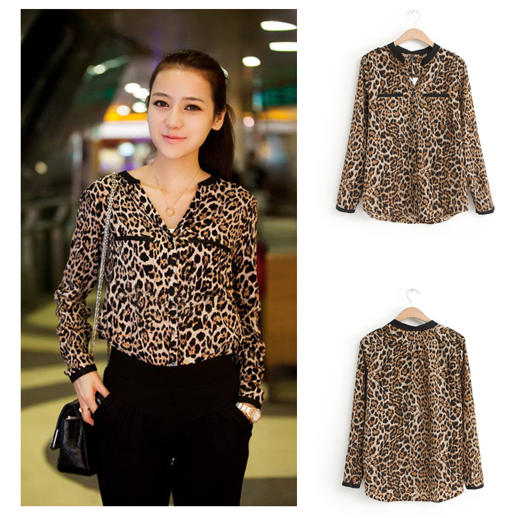> Damen Bekleidung > Shirts > Damen Bluse Leopardenmuster Shirt mit langen Ärmel Hals Top Lose Blusen plus Size Chiffon Shirt camisa Feminina
