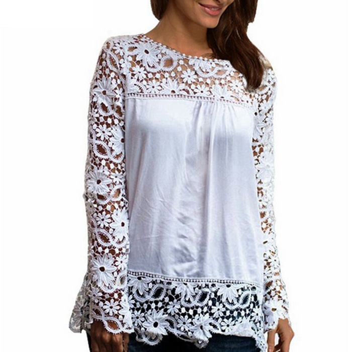 > Damen Bekleidung > Shirts > Damen chiffion Blusen lange Ärmel Spitzen Blusen Hebt Häkeln Femininas Mode plus Size