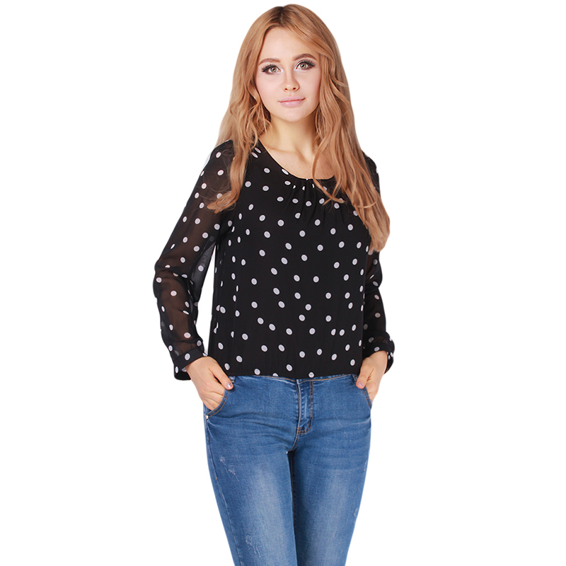 > Damen Bekleidung > Shirts > neue Damen im Polka Dot gedruckte Blusen puff lange Ärmel Mode Damen Chiffon Lockeren Hemden und Grösse m l xl xxl