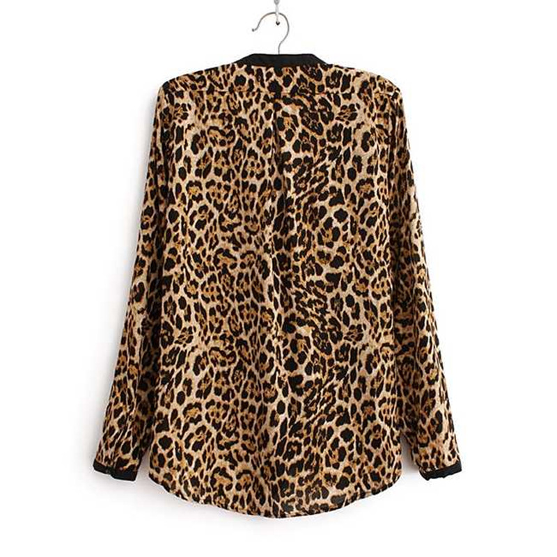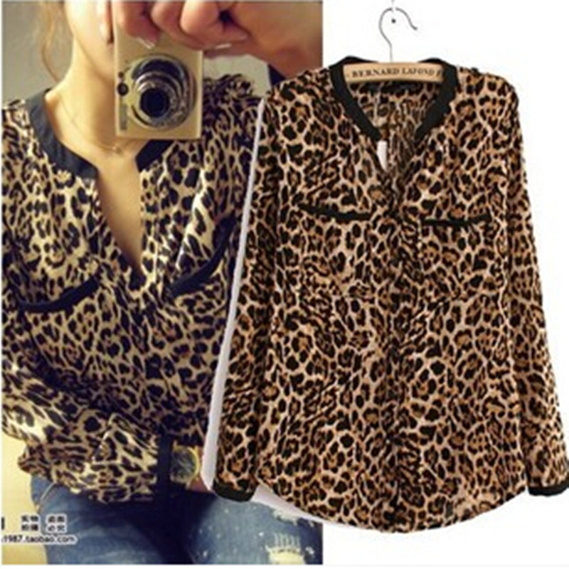 > Damen Bekleidung > Shirts > Mode Leopardenmuster Chiffon Damen Bluse Lady sexy lange Ärmel Top Hemd Lose plus Size Hals Leoparden Bluse freie