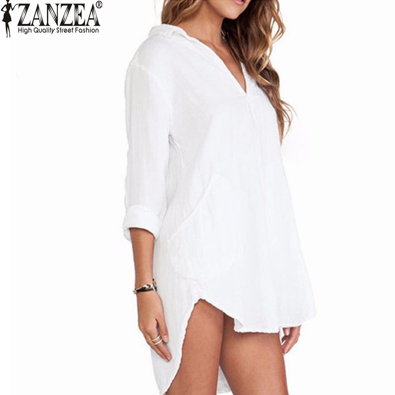 > Damen Bekleidung > Shirts > Femininas sexy Damen Grosse Weisse Hemden Kleid mit langen Ärmel Tasche lässig Bluse Maximal plus Size Mini