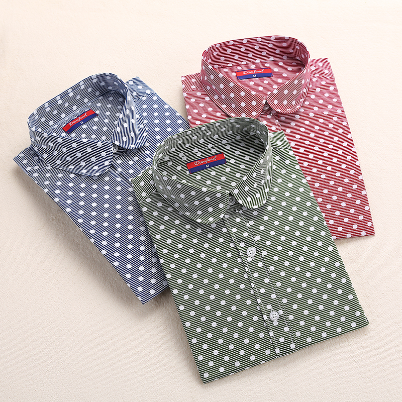 > Damen Bekleidung > Shirts > plus Size Polka Dot Baumwolle Damen Blusen lange Ärmel Damen Hemden ab Kragen Baumwolle lässig Hemd Damen