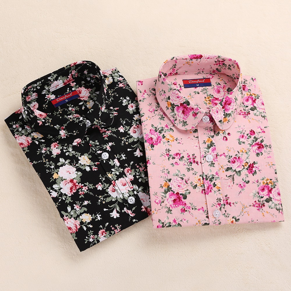 > Damen Bekleidung > Shirts > dioufond Floral Damen Blusen Polka Dot Bluse Langarm Hemd Damen Baumwolle camisas Femininas Feminina Damen