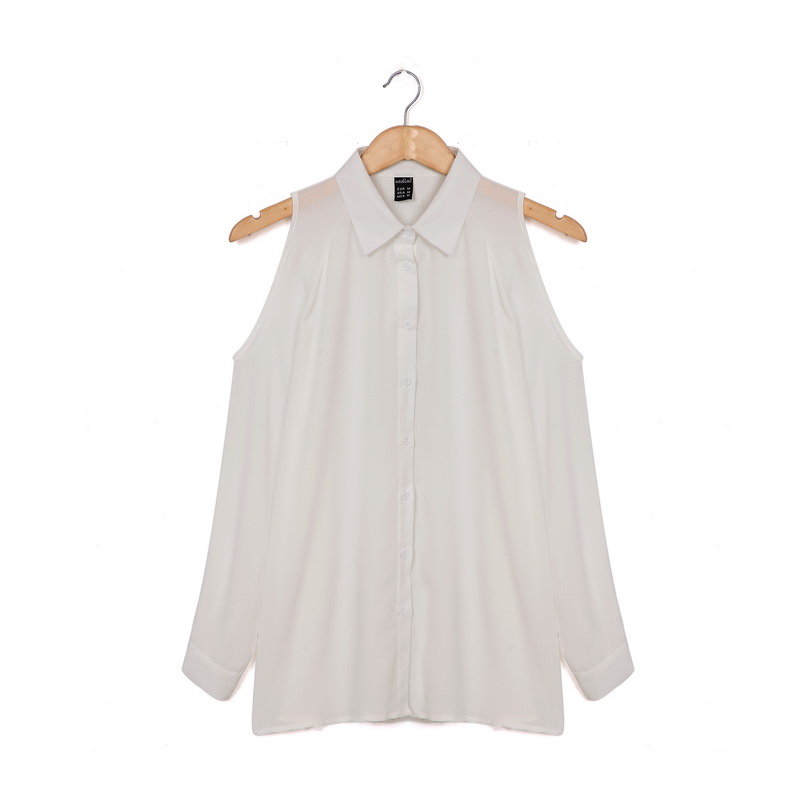 > Damen Bekleidung > Shirts > Damen aus Schulter lange Hemden sexy Chiffon Tops ab Kragen Bluse Femininas lange Ärmel Locker und Grösse